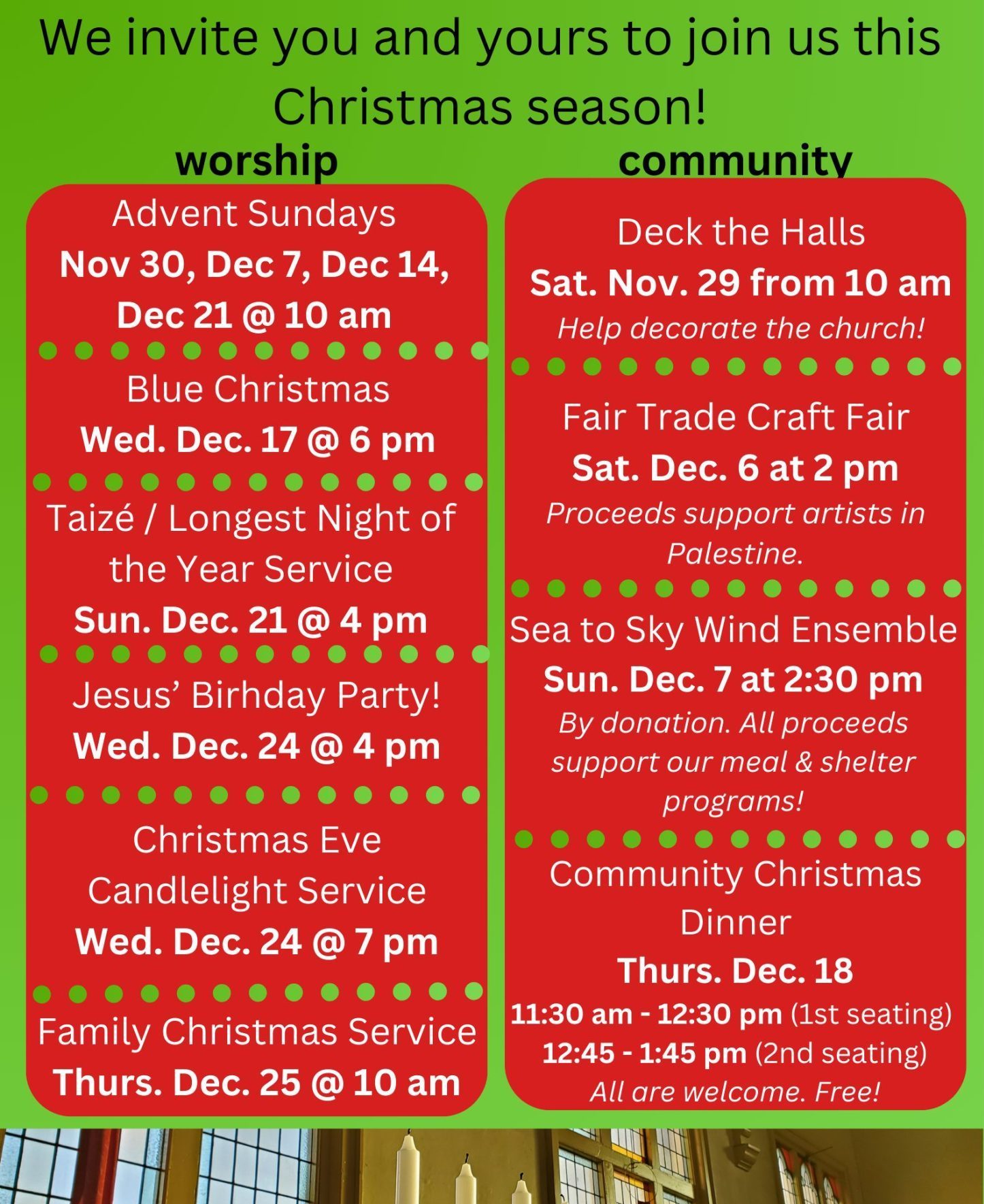 St. Andrew’s United Church gathers on the unceded territories of the Musqueam, Tsleil-Waututh, and Squamish Indigenous peoples. As people of faith, we commit to listen, to learn, and to work towards justice and reconciliation with our First Nations brothers and sisters.,