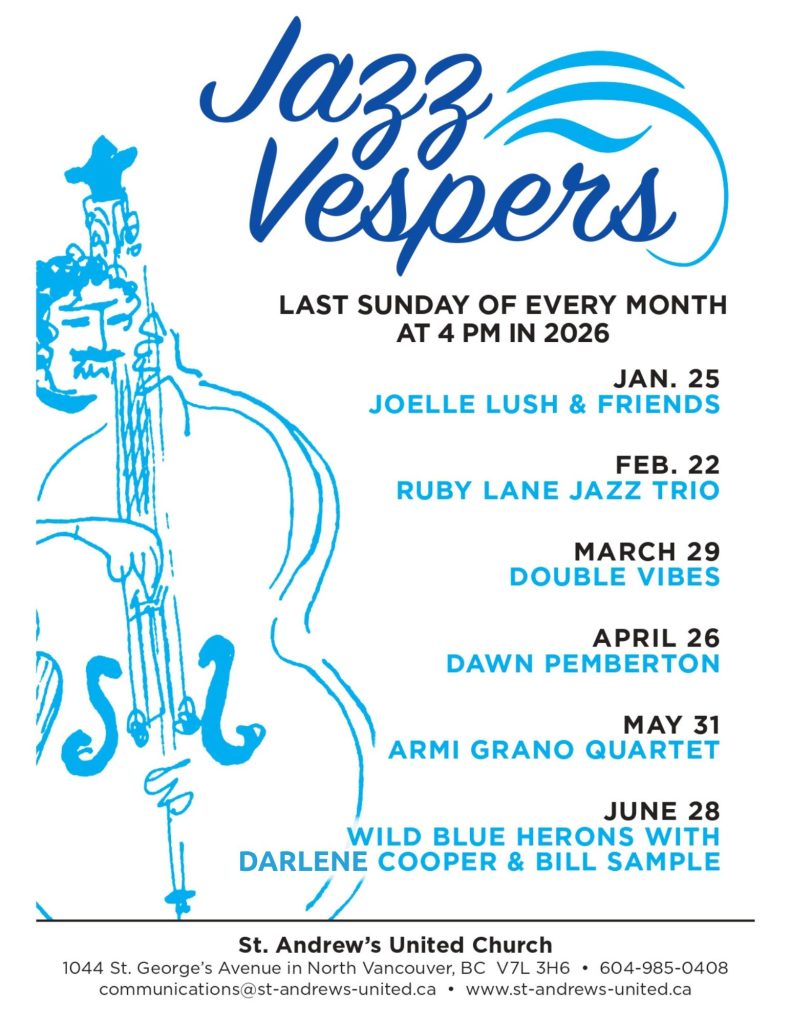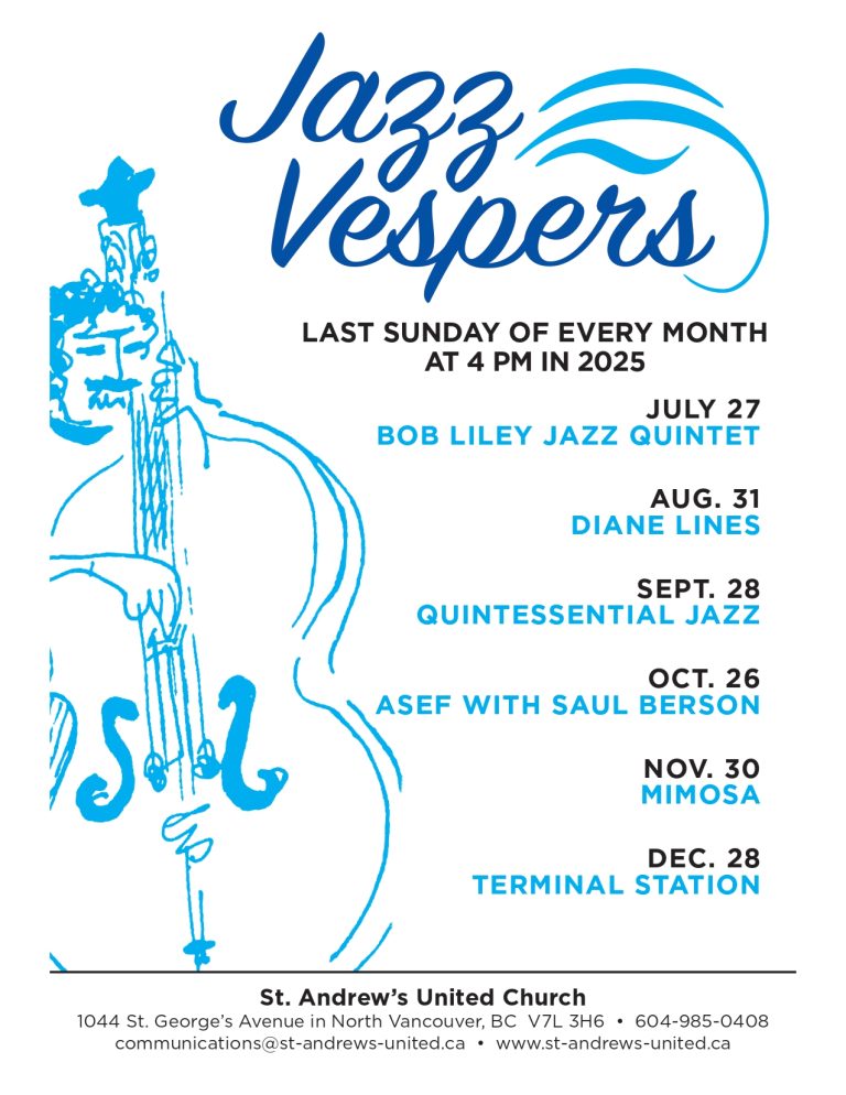 St. Andrew’s United Church gathers on the unceded territories of the Musqueam, Tsleil-Waututh, and Squamish Indigenous peoples. As people of faith, we commit to listen, to learn, and to work towards justice and reconciliation with our First Nations brothers and sisters.,